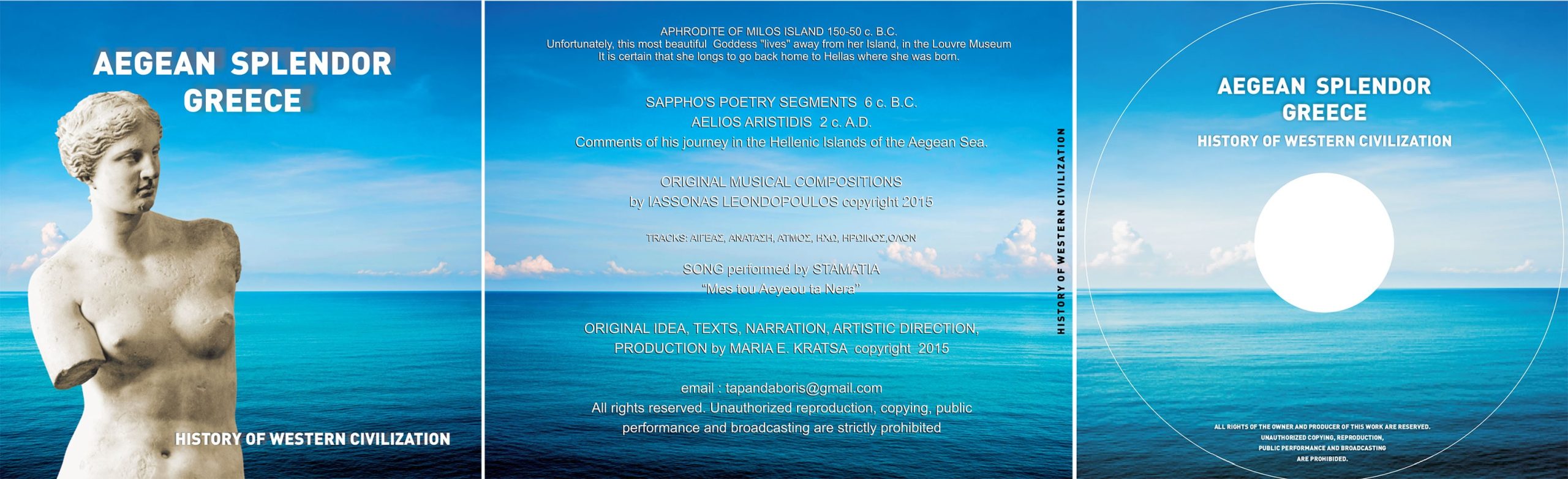 Design of the CD cover for Aegean Splendor Greece.