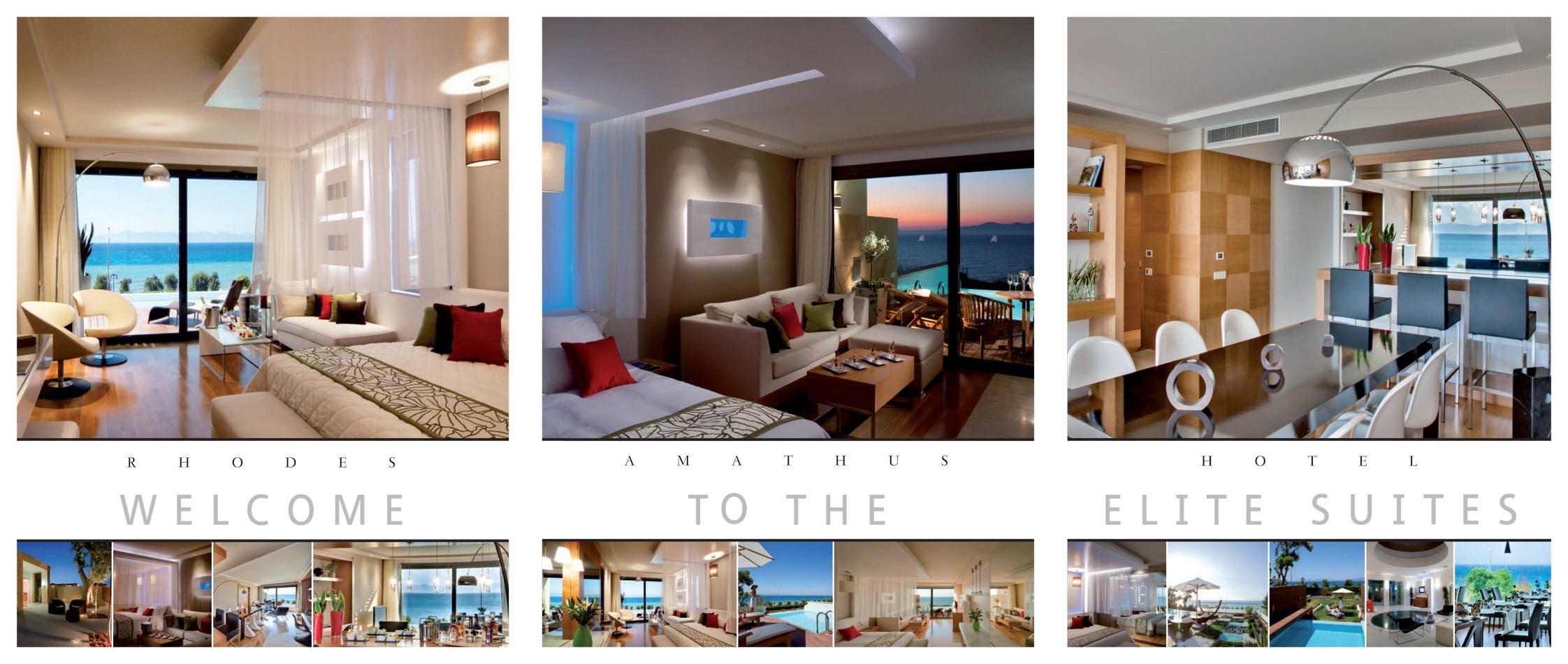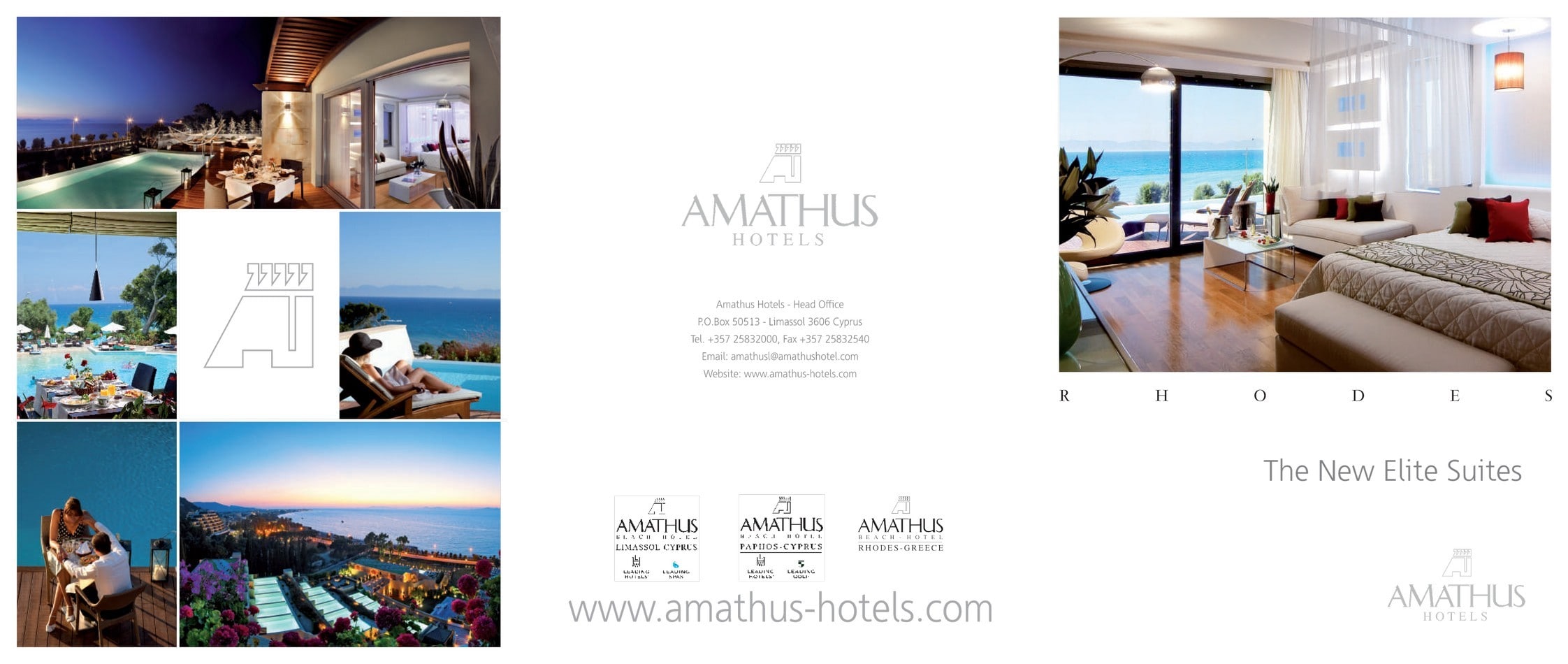 Tri-fold brochure design for Amathus Hotels, introducing the brand’s new Elite Suites across its luxury properties in Limassol, Paphos, and Rhodes. Titled “Welcome to the Elite Suites,” the brochure features a minimalist and modern aesthetic that highlights the refined elegance and architectural finesse of the suites. Designed to appeal to both returning and new guests, the print piece reflects the group’s elevated standards of luxury, exclusivity and personalized comfort in the Mediterranean hospitality landscape.