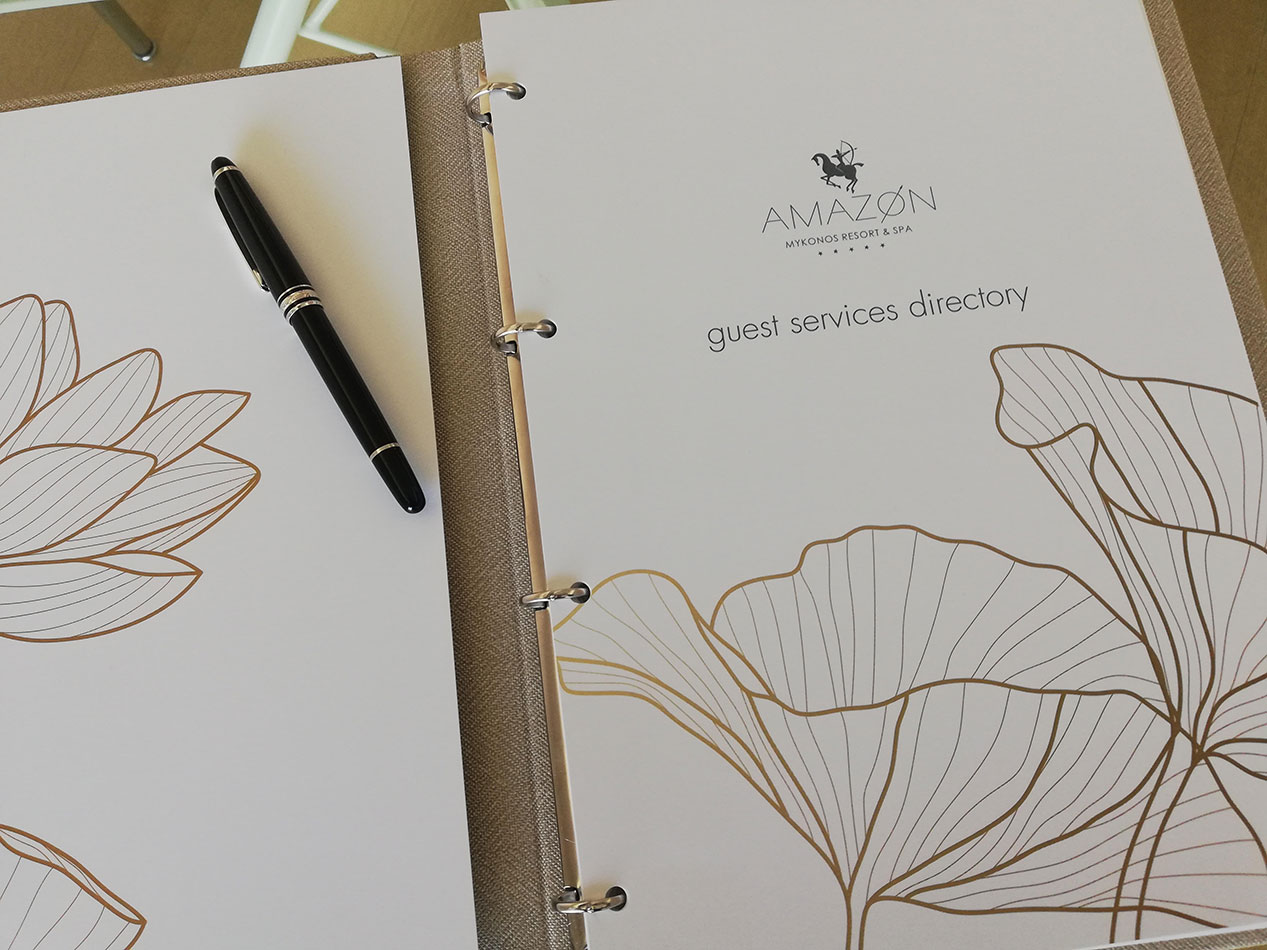 Creation of the guest services directory for the Amazon Hotel in Mykonos.