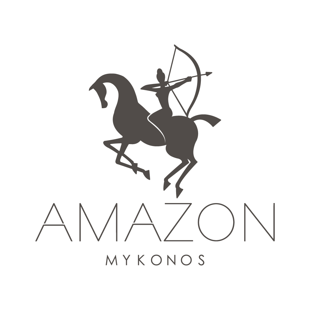 The logo of Amazon Mykonos Resort & Spa is not merely a visual choice· it is a dynamic symbol of identity, inspiration and experience. At the heart of the design, the figure of the Amazon on horseback—an archer in full motion — captures the energy, independence and spirit of exploration that define the resort’s character. It is a call to the traveler who seeks not just luxury, but experiences that awaken, empower and transform.
