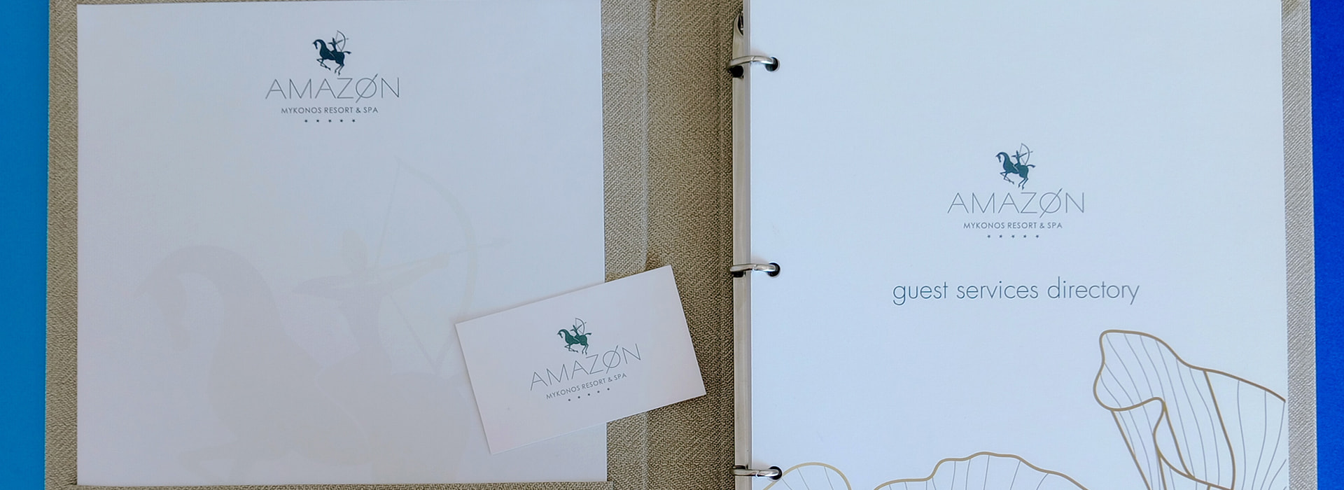 The corporate identity of Amazon Resort & Spa was designed with an emphasis on luxury, natural harmony and authenticity, reflecting the brand’s philosophy. A minimalist and refined aesthetic was applied across the letterhead, cards, envelopes and the Directory.