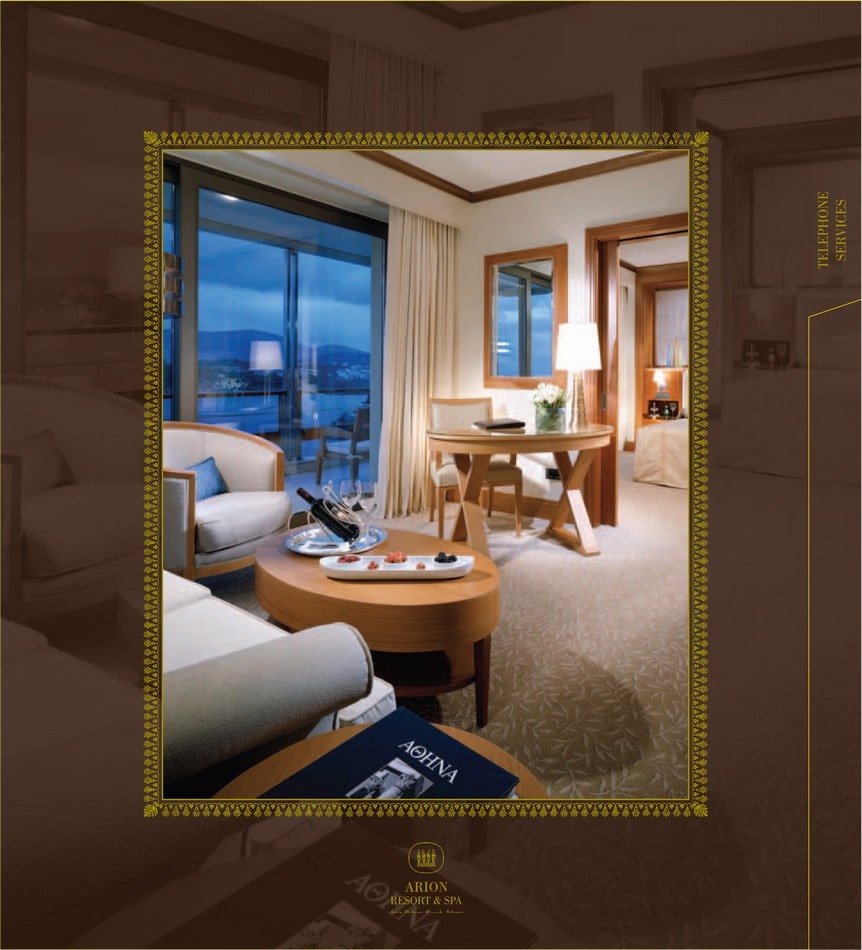 Creation of the Room Service Directory for Arion Resort & Spa. With six different cover categories, the fabric-bound folder informs every guest—whether in rooms or suites—about the services of the ultra-luxury hotel. An entire world of desires is fulfilled in a magical and highly effective way.