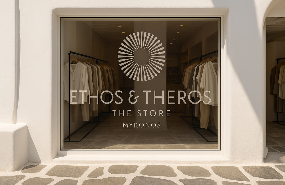 At the heart of Ethos & Theros – The Store lies an identity that conveys elegance, authenticity and a refined connection to the spirit of Mykonos. The visual mark is not merely a decorative element · it is a symbol that captures the essence of summer in the Aegean: light, energy and timeless elegance.