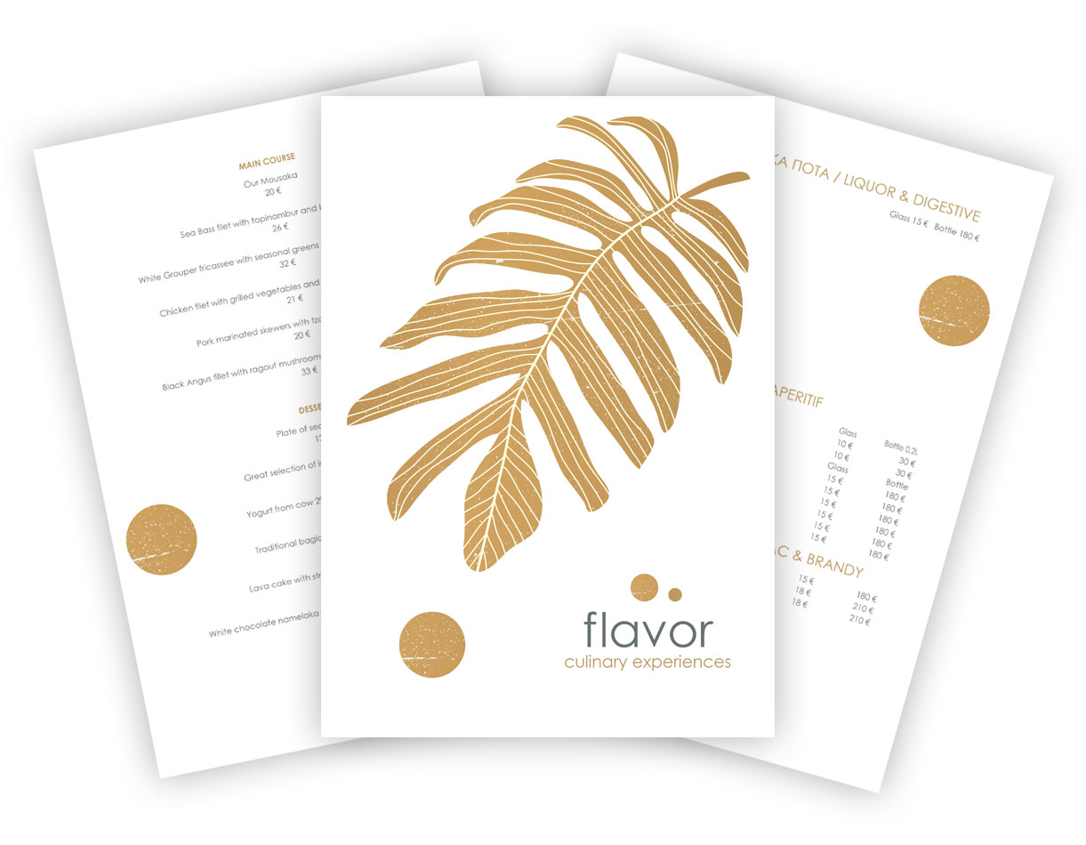 Design of the menu catalogue for Flavor.