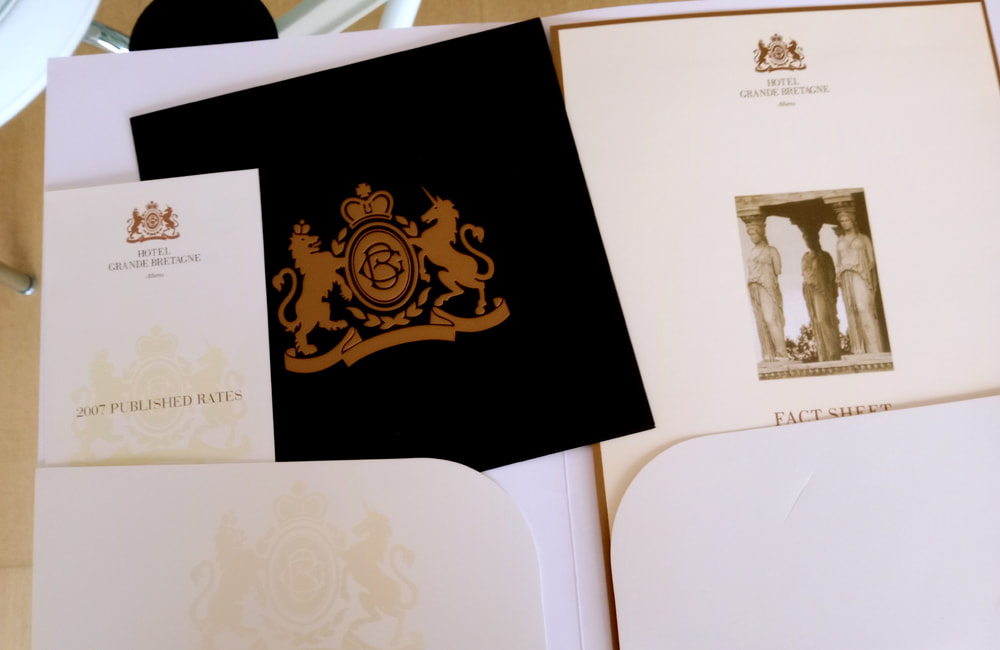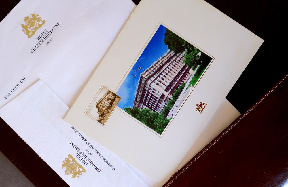 Hotel Grande Bretagne, a Luxury Collection Hotel Athens, a symbol of luxury and timeless elegance in the heart of Athens, requires a corporate identity print design that reflects its prestige and aesthetic. The design is based on preserving the hotel’s classic identity, with a carefully selected color palette that includes shades of gold, deep blue, beige and white. The typography is elegant and timeless, featuring serif typefaces that convey prestige and high aesthetic value.