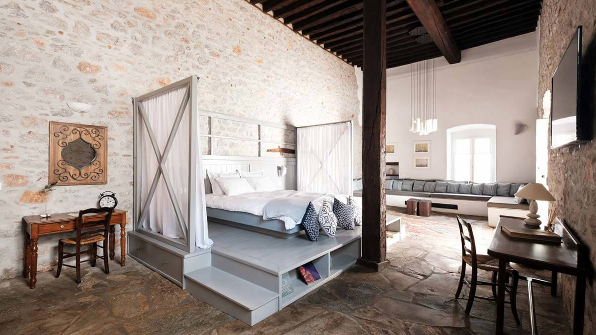 And if the “art of living” can find meaning beyond words anywhere, it is here – in a courtyard with jasmine, beneath 18th century rooftiles, behind windows that look out to the sea of Hydra and whisper to us: