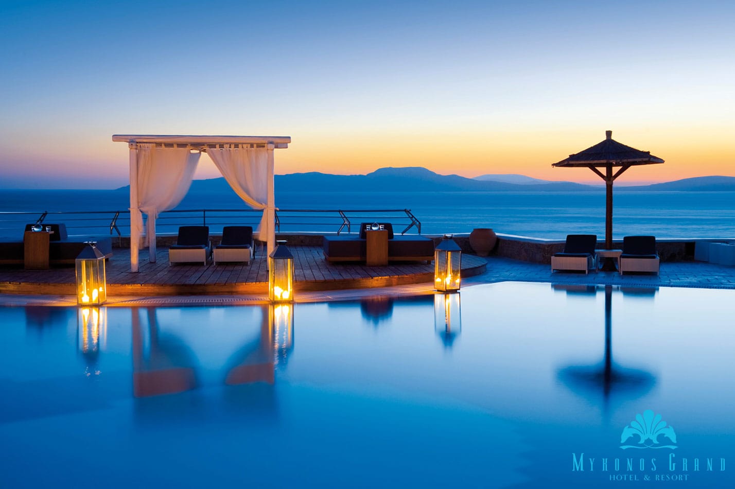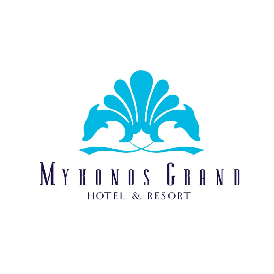 Custom logo design for the five-star Mykonos Grand Hotel & Resort, inspired by the island’s natural beauty and cultural heritage. The emblem features two mirrored dolphins forming a seashell above the water symbolizing harmony, elegance, and the resort’s deep connection to the Aegean Sea. The dolphins also pay tribute to the ancient mosaics of nearby Delos, visible from every part of the hotel, blending mythology with modern luxury.