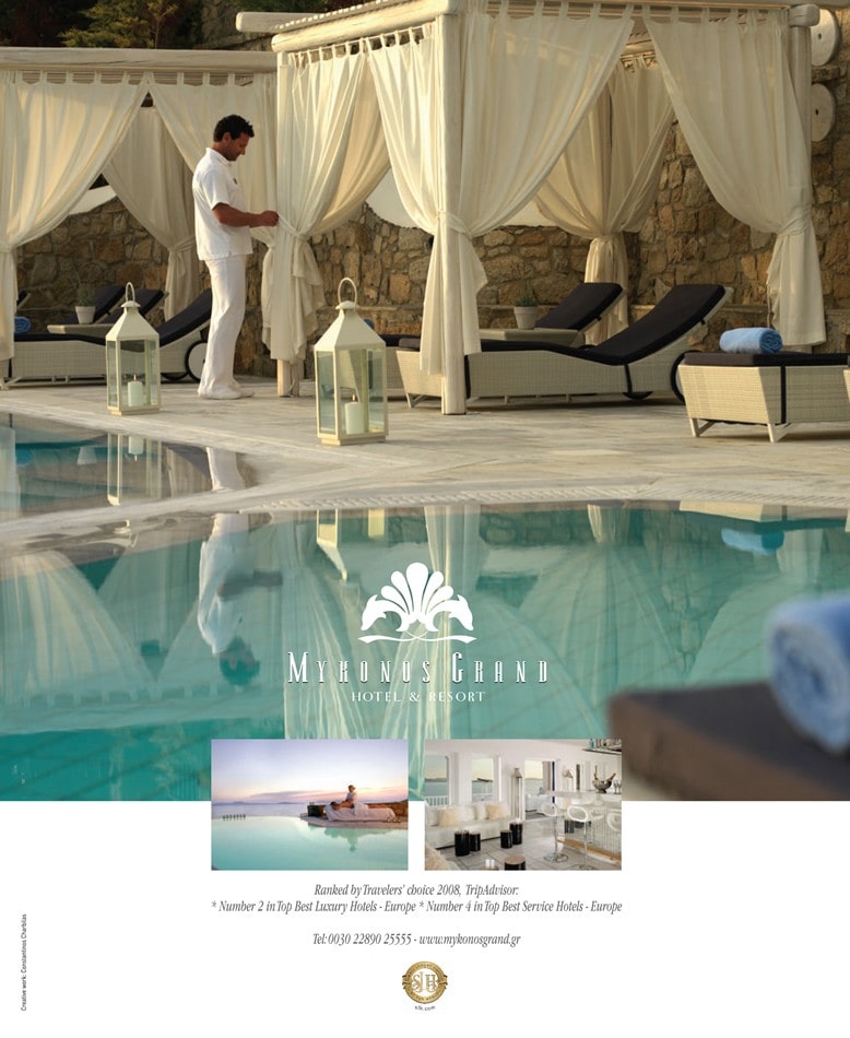 Advertising layout design for the five – star Mykonos Grand Hotel & Resort.