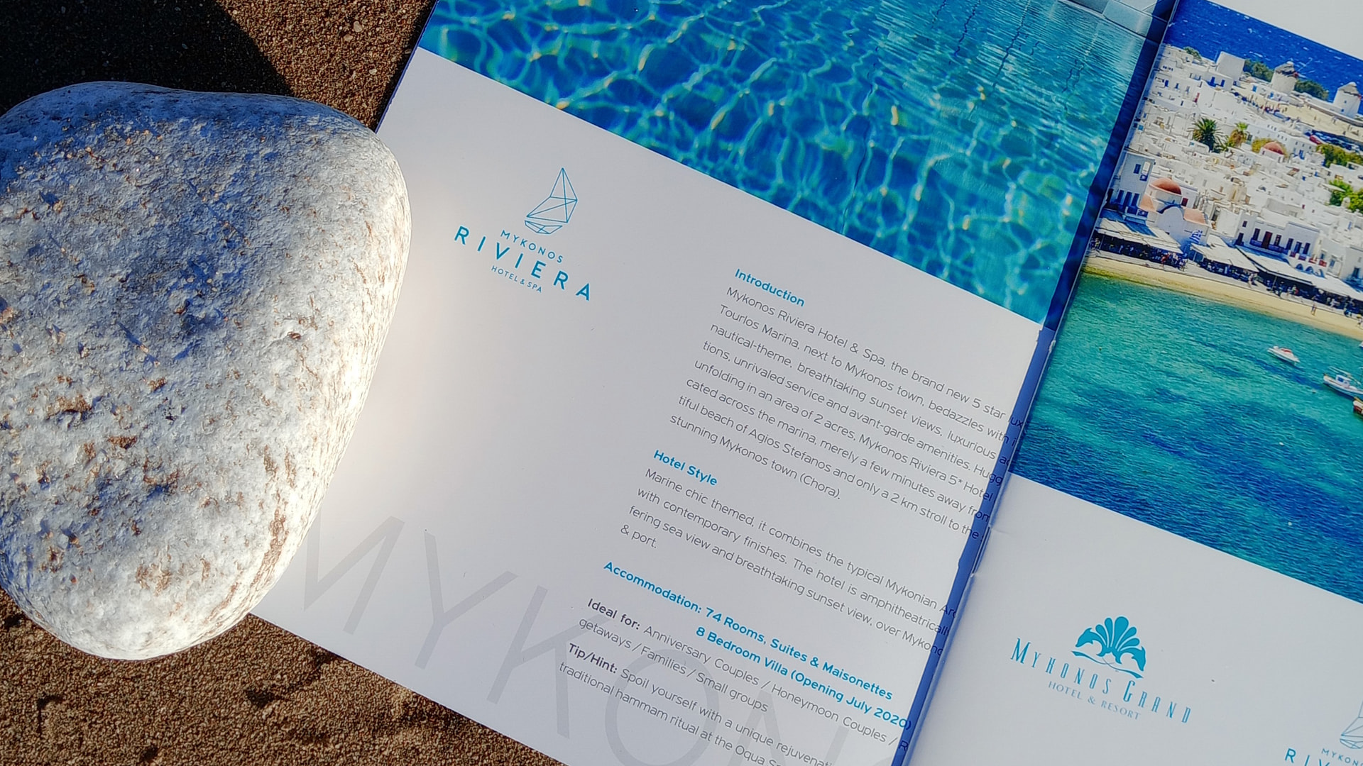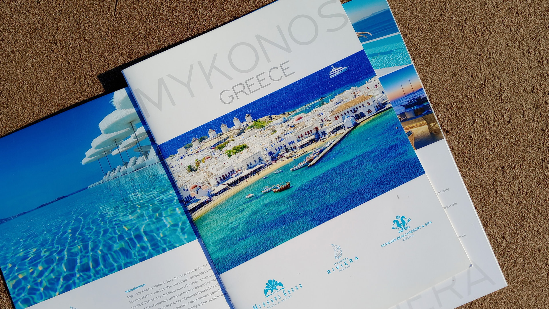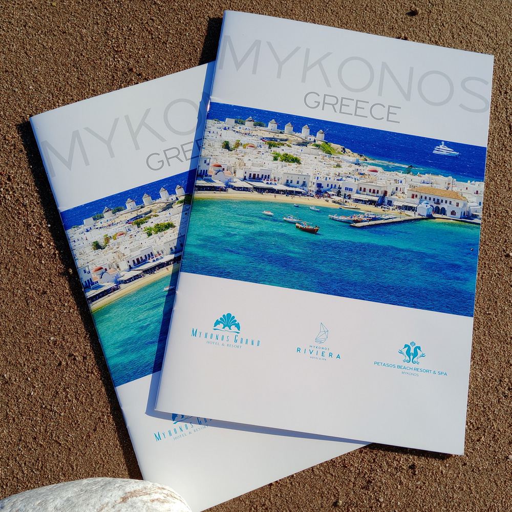 The Mykonos Greece brochure presents the three ultra-luxury hotels Mykonos Grand, Mykonos Riviera and Petasos Hotels in Mykonos, offering a captivating insight into the island’s high-end hospitality experience. With a contemporary and elegant design and striking imagery, the brochure highlights the unique character of each hotel, achieving a harmonious balance between aesthetics and information. In the presentation of Mykonos Grand, the brochure emphasizes the elegant suites and villas with breathtaking views of the Aegean, as well as the personalized wellness services, from the state-of-the-art spa to the outdoor private pools.