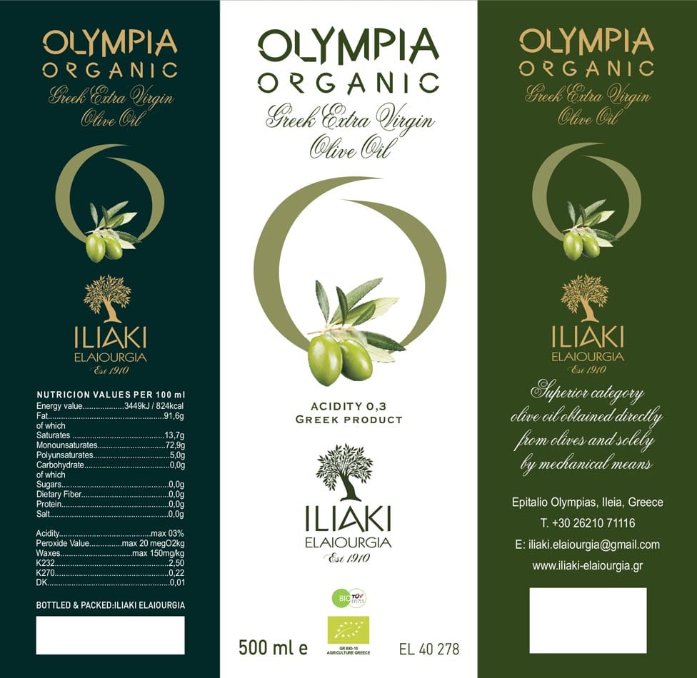 Label design for Olympia Organic, a premium extra virgin olive oil produced by Iliaki Elaiourgia. Inspired by the purity of organic cultivation and the historic olive-growing region of Olympia, the label combines earthy tones with elegant typography to convey authenticity, tradition, and natural excellence. The design reflects the brand’s dedication to quality, sustainability, and Greek agricultural heritage.
