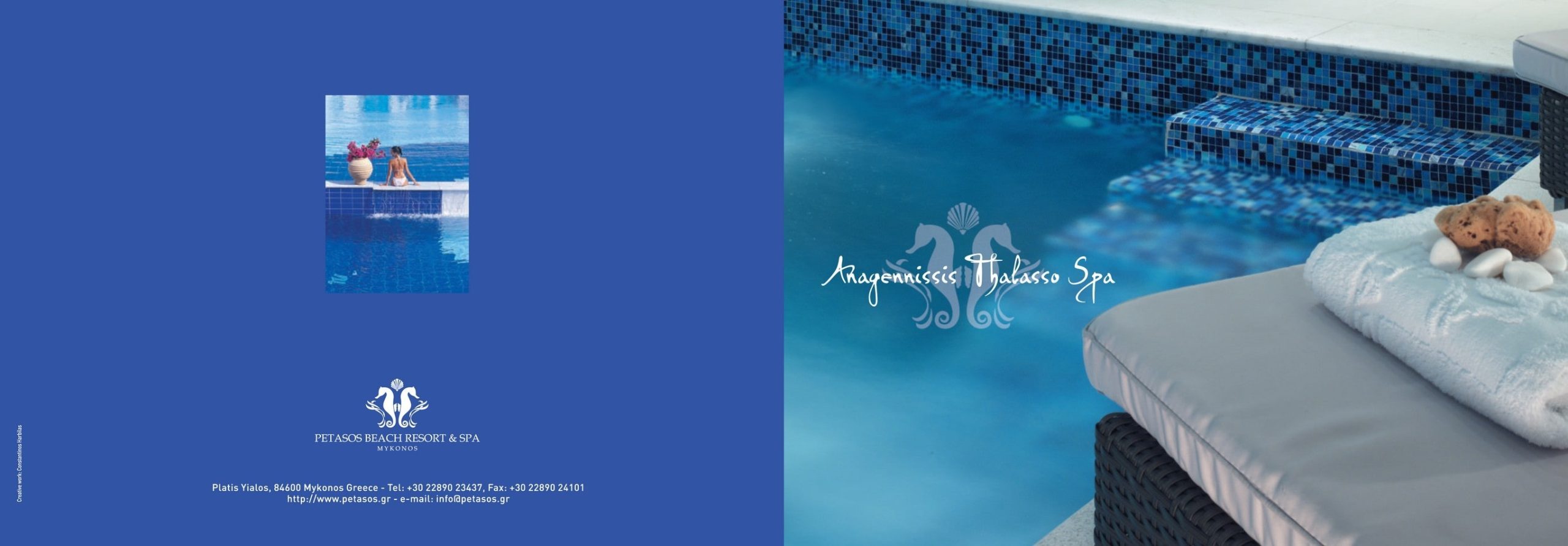 Design of a brochure – folder for Anagennisis Thalasso Spa at Petasos Beach Resort & Spa. The luxury brochure is created for men’s and women’s facial and body beauty treatments, with the treatment menus integrated into the special pocket of the folder! The goal is for guests, through the photographic material of the Spa areas, to be fully informed about the services and treatment packages offered by the hotel during their stay.