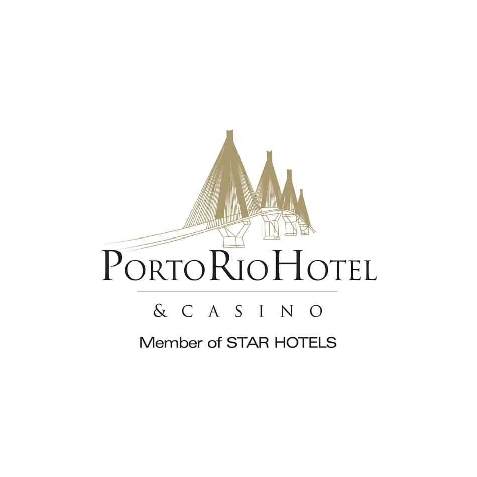 Logo design for Porto Rio Hotel & Casino, a seaside resort nestled in a lush green oasis near the city of Patras. The identity draws inspiration from the iconic Rio-Antirrio Bridge, a landmark visible from all areas of the hotel. Rendered in a modern minimalist style, the bridge becomes the central symbol of the logo representing connection, elegance and the unique character of this luxury destination. Surrounded by the Patraikos Gulf and the Panachaiko mountain range, the logo reflects the hotel's harmonious blend of nature, architecture and refined hospitality.