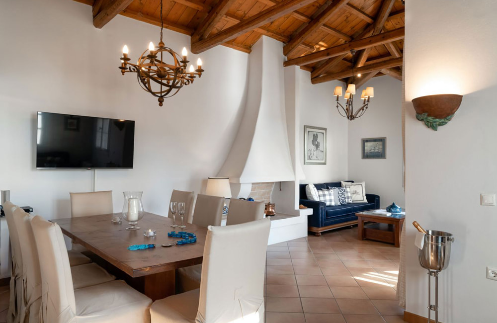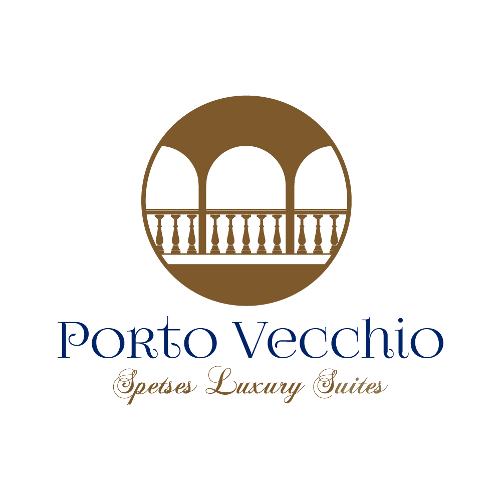 The main name, “Porto Vecchio”, is set in an elegant serif typeface that conveys a sense of tradition and prestige. The accompanying phrase “Spetses Luxury Suites” is written in a fluid, calligraphic typeface, adding an air of luxury and finesse.