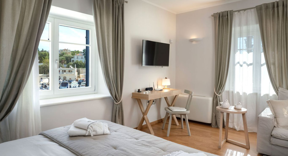 Overall, the logo of Porto Vecchio Spetses functions as the visual signature of a place where elegance, history and the charm of the Greek islands coexist in harmony. It captures the essence of an aristocratic retreat, paying tribute to the past while at the same time inviting guests to enjoy an authentic and luxurious experience. Through its carefully considered design, the logo is not merely a representation of the name, but a symbol of the unique atmosphere that makes Porto Vecchio Spetses a truly distinctive destination.