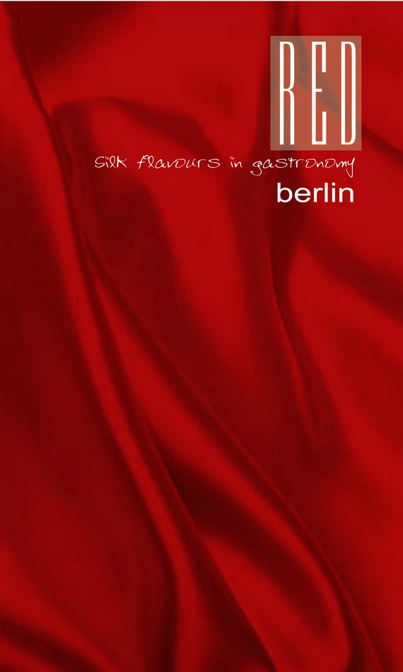Red menu design for a restaurant in Berlin. A space featuring red velvet sofas and fabrics inspired the red tone of the menu cover, while inside it highlights the velvety culinary delights of a gifted chef.
