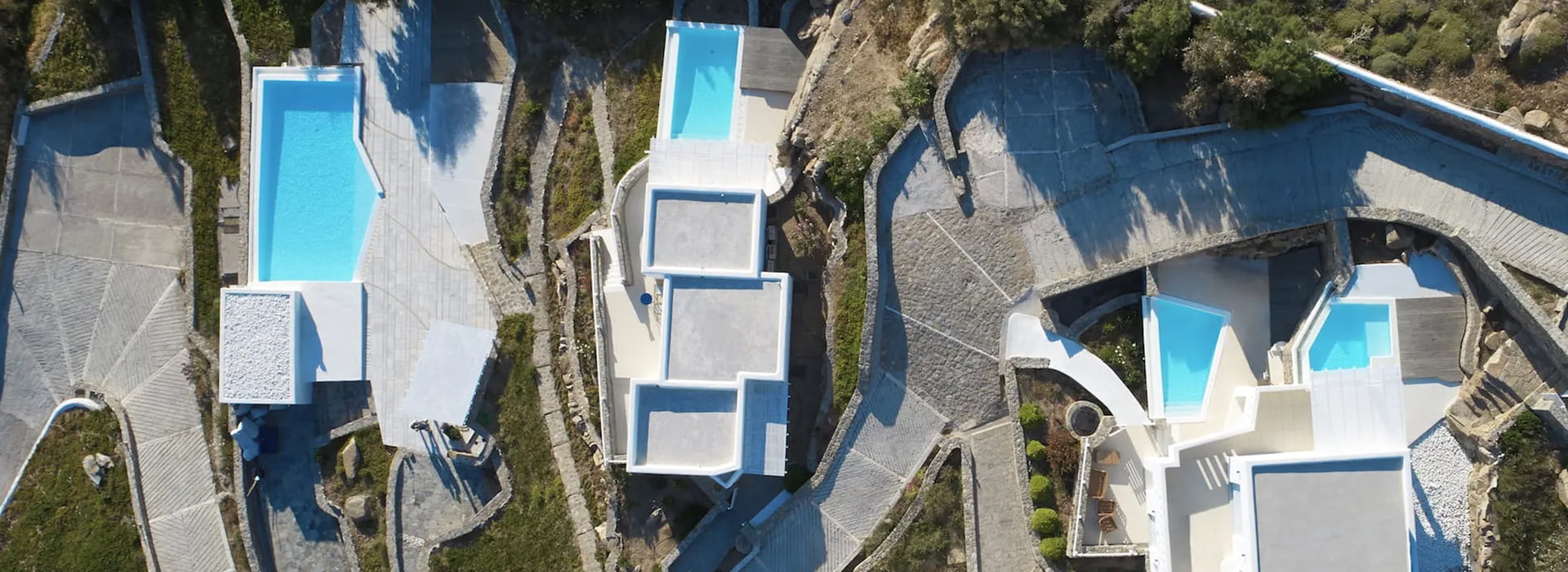 The images do not challenge you. They invite you in. They are captured in a way that does not place you as a viewer, but allows you to stand within them. A frame overlooking the pool, a half drawn white fabric letting the light pass through, a corner with a blue window and the shadow of a Cycladic pergola – all designed not to impress, but to awaken a sense of presence.