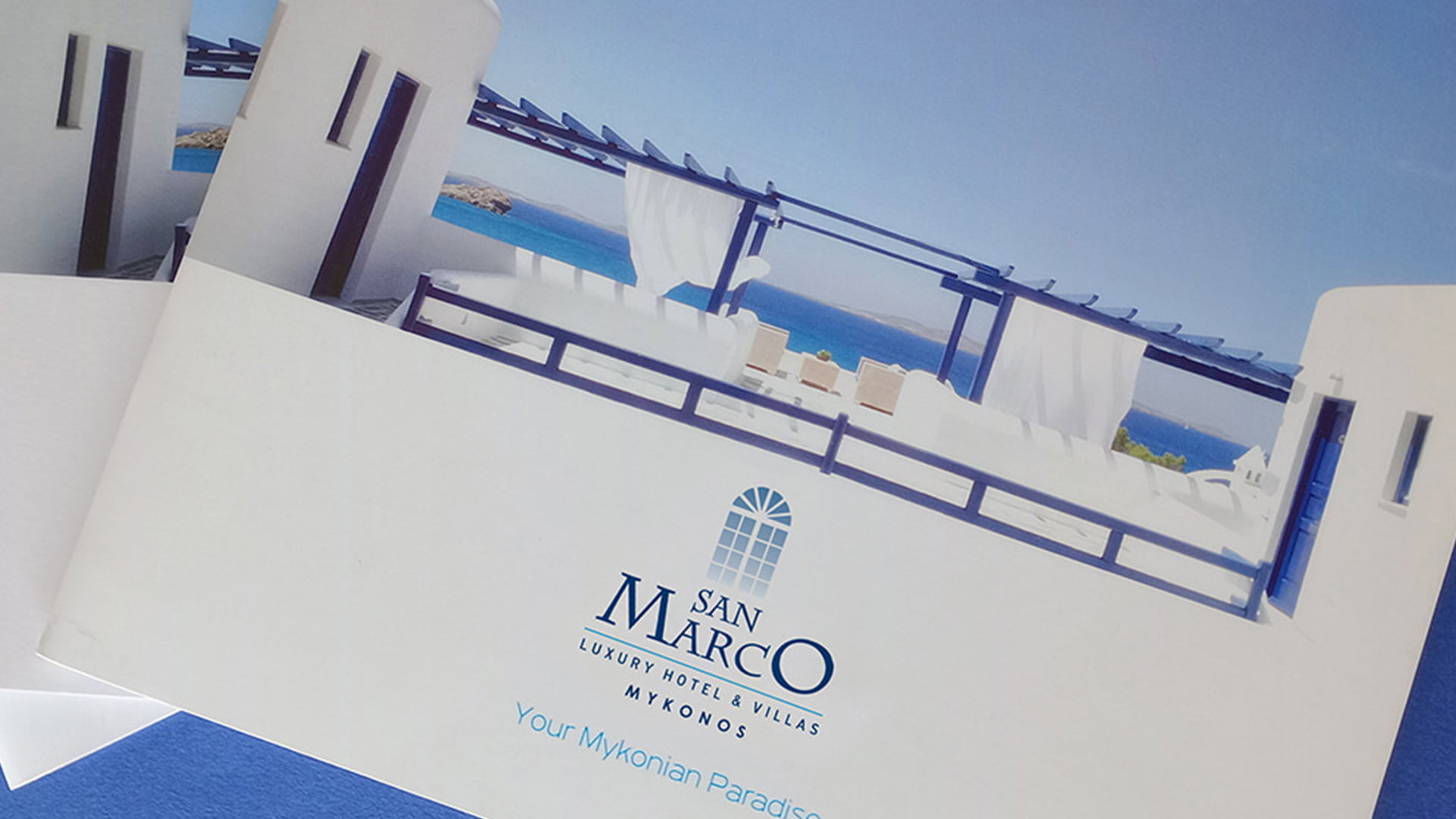 Every hotel has its own image. Few, however, have their own narrative. The brochure of San Marco Luxury Hotel & Villas in Mykonos was created not to speak about the place, but to be wrapped in its aura. It was not designed to impress, but to gently set the mood without noise.