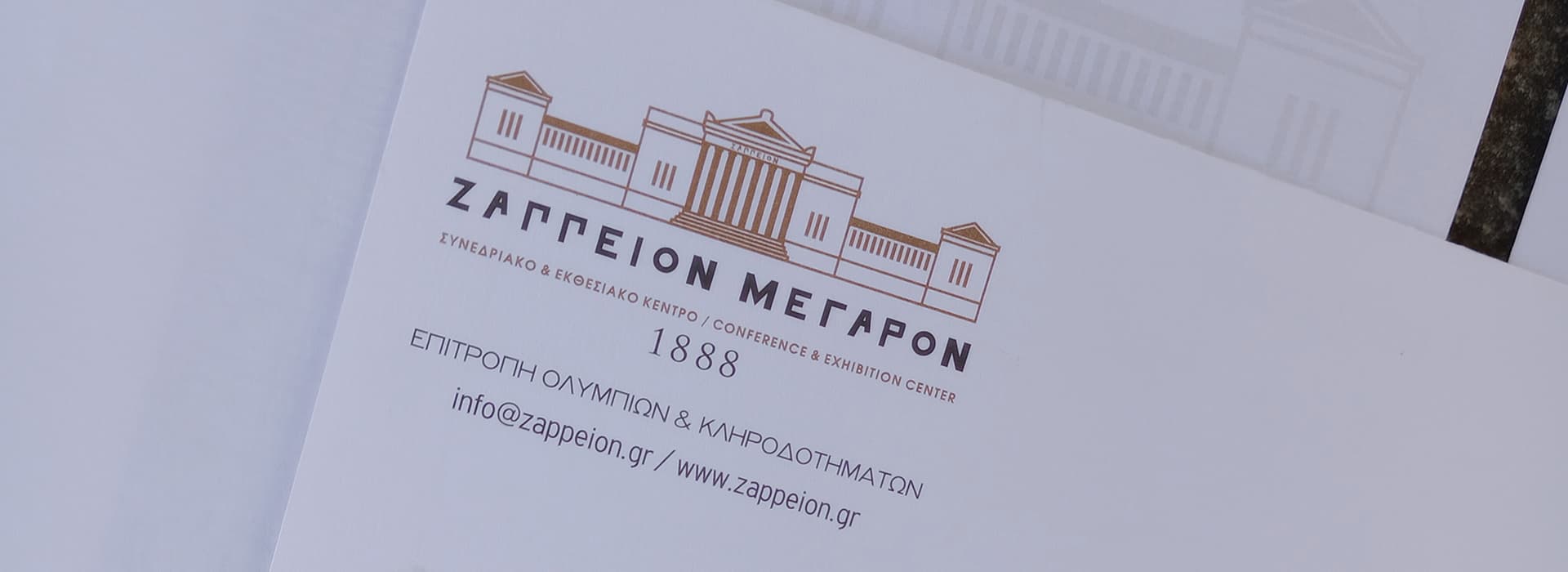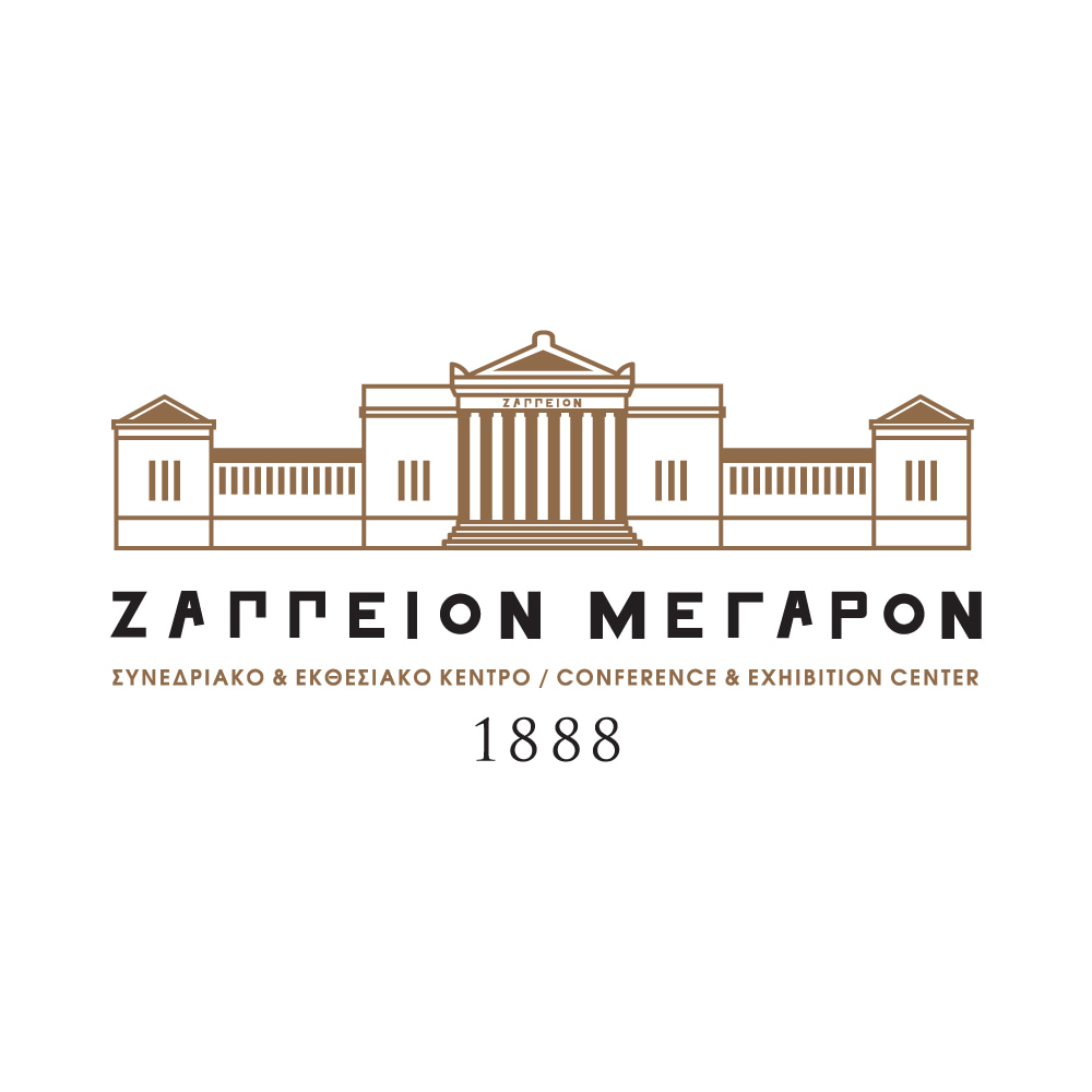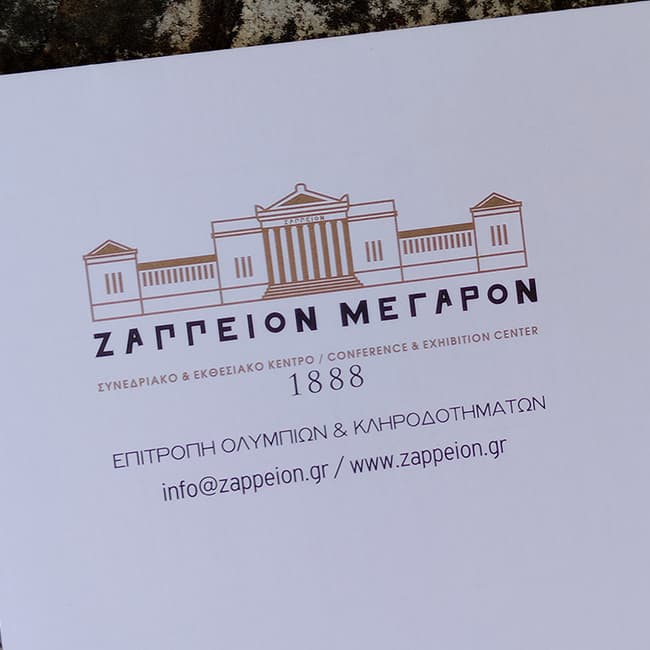 The typography elegant, clear and highly legible emphasizes the word ZAPPEION with a sense of stability and dignity, while the accompanying designation Conference & Exhibition Center clearly communicates the venue’s contemporary role, maintaining a careful balance between historical memory and present-day function.