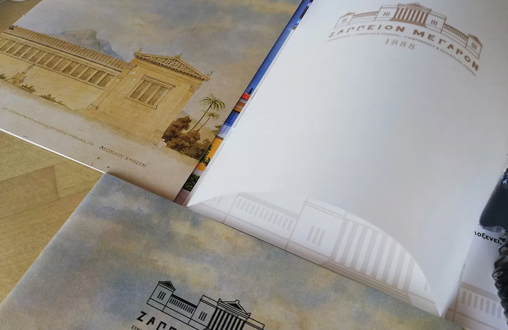 The printed materials also include proposals for customized services such as space layout, equipment and event support, offering a comprehensive overview of the possibilities provided by the Zappeion, while at the same time serving as an ideal tool for promotion and information for those wishing to organize a distinctive event, embodying the harmony between tradition and modern functionality. With an emphasis on detail and aesthetics, they convey the historical and cultural character of the Zappeion, inviting organizers and visitors to discover a unique venue in the heart of Athens.
