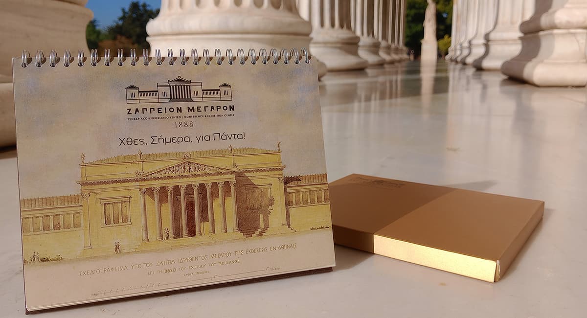 In every line, the Zappeion emblem symbolizes cultural continuity and the building’s enduring presence at the heart of Greek public life.